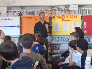 È stata un’occasione speciale per i ragazzi della nostra comunità scolastica. Manlio ha dialogato con le classi prime e seconde a partire dal libro “Nessuno verrà a prenderti” che fa parte della collana Ossigeno di Mondadori. Le classi terze, invece, hanno discusso con l’autore riguardo il romanzo storico “Di fuoco e seta”, ambientato nel Risorgimento e oggetto di una ampia unità didattica interdisciplinare che ha portato le due classi terze in viaggio d’istruzione a Solferino e San Martino della Battaglia, proprio sui luoghi del romanzo e di alcune tra le più cruente battaglie della nostra storia. L’unità interdisciplinare, incentrata su “Di fuoco e seta” ha toccato diverse materie e argomenti:
